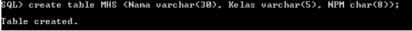 Nama dan kelas dari tabel MHS, kita harus memberi nama view-nya terlebih dahulu